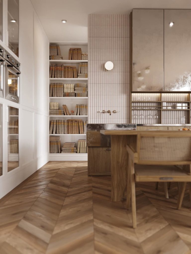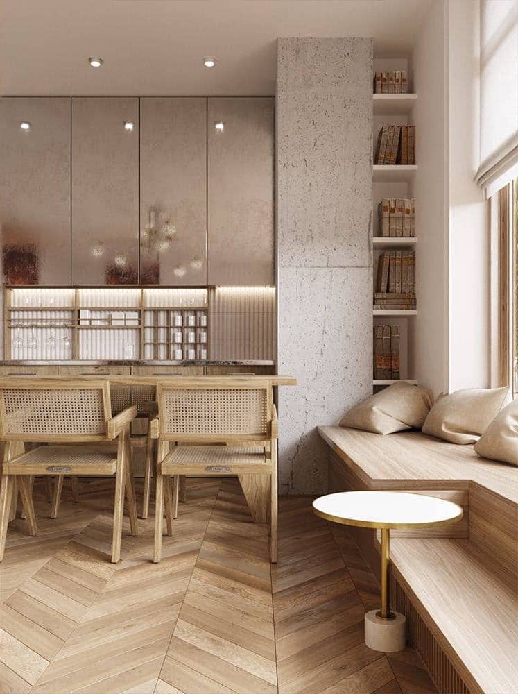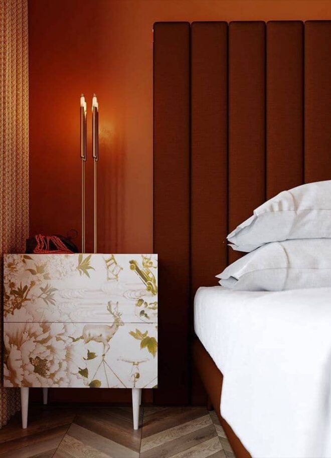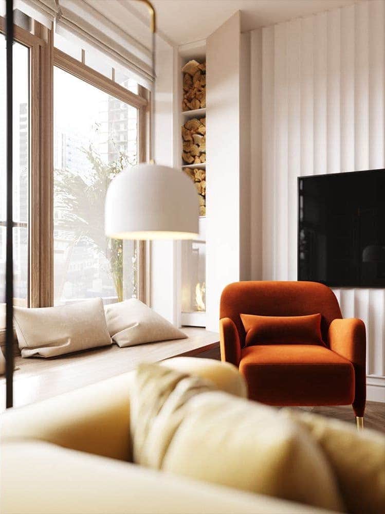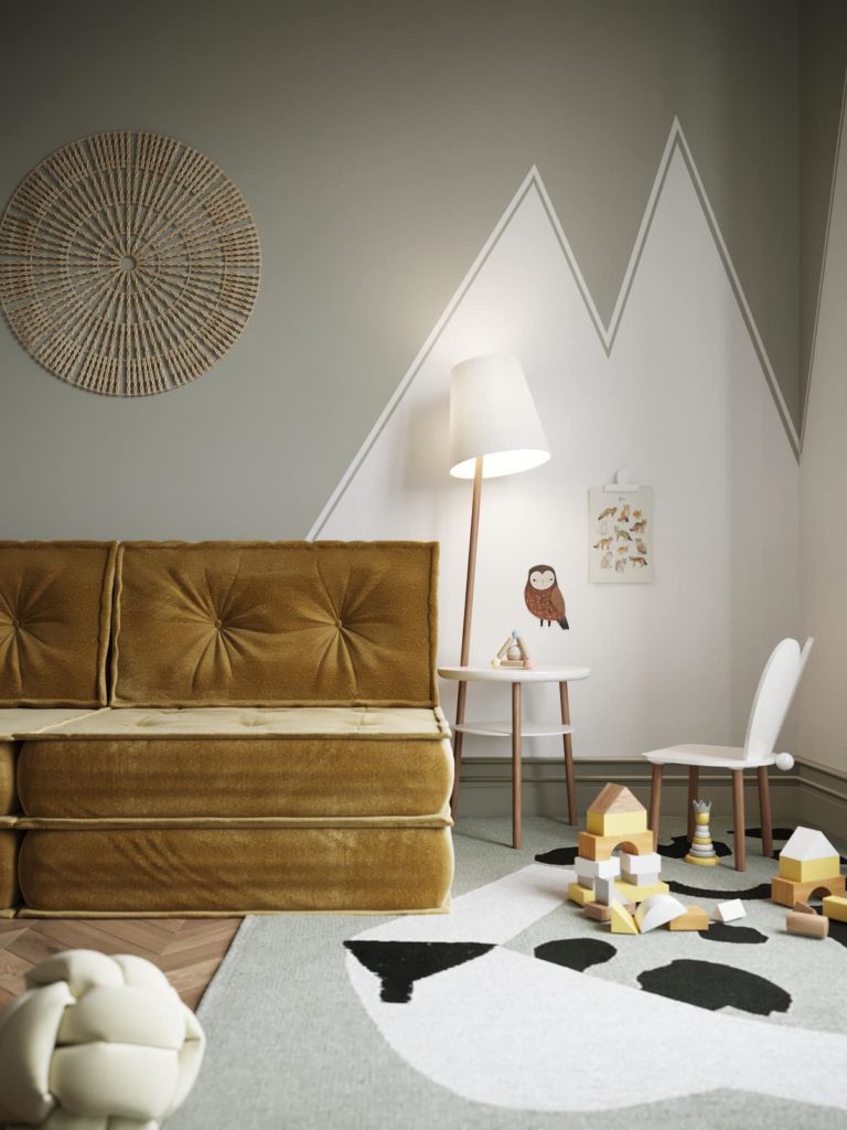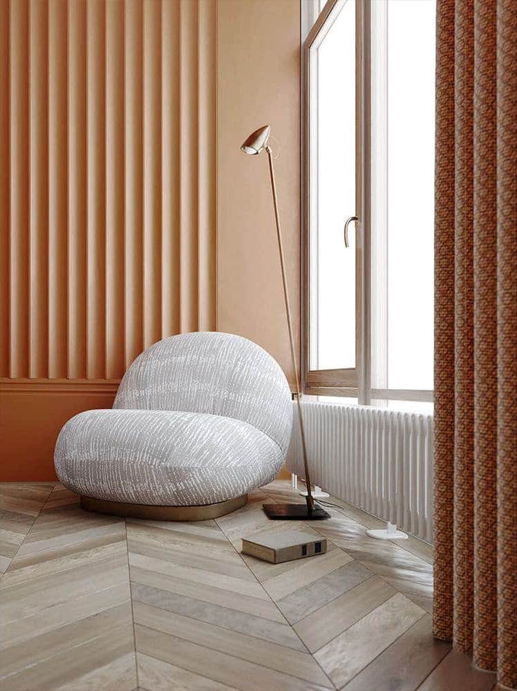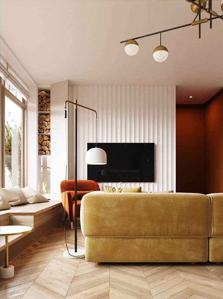 Natura stylu mid-century uwielbia naturalne drewno, żywe grafiki i obszerną ceramikę.  Z przyjemnością wyjęliśmy wyraziste duże lampy podłogowe, wygodne kolorowe krzesła, mosiężne rurki i drewniany parkiet.