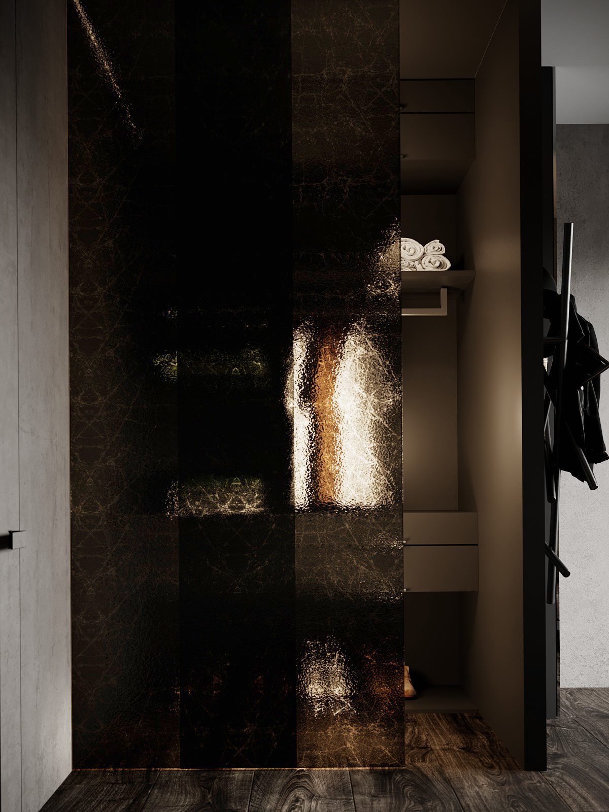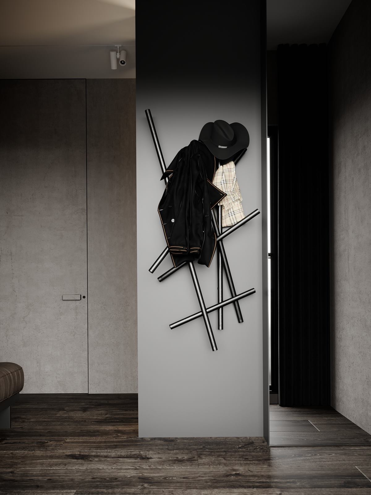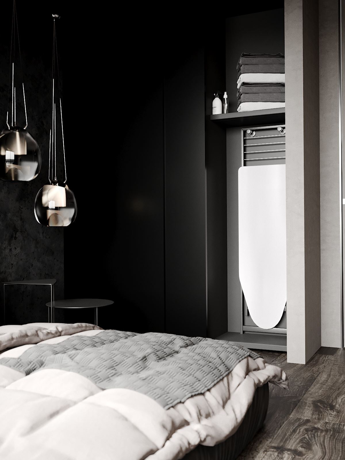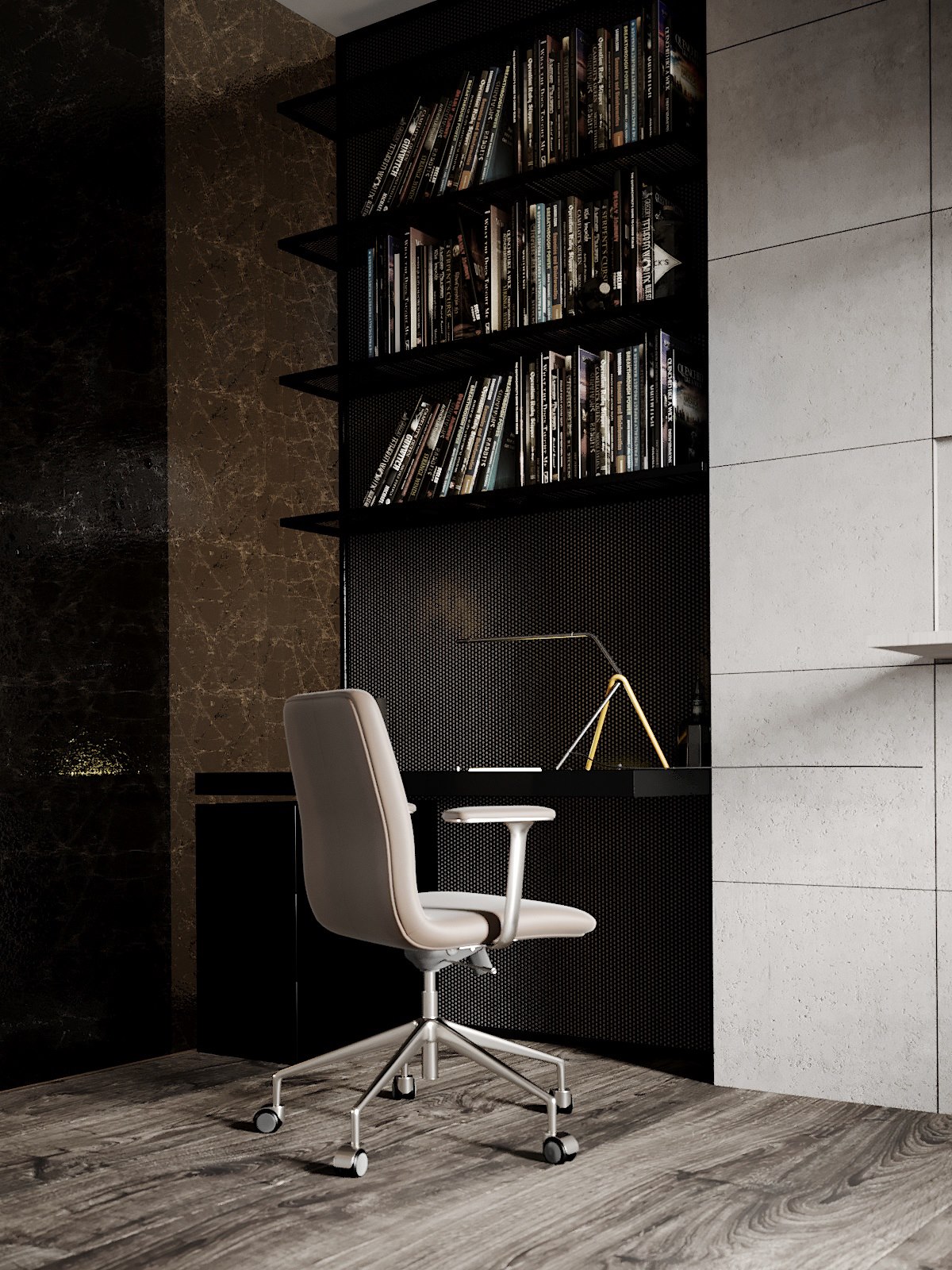 Projekt wykonany w typowo męskim stylu z elementami minimalizmu – przestronne otoczenie, celowo wyeksponowana faktura z solidnych materiałów wysokiej jakości. To asertywność, celowość, poczucie wszechwładzy połączonej z naturalnością i wdziękiem.